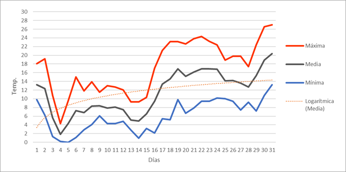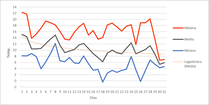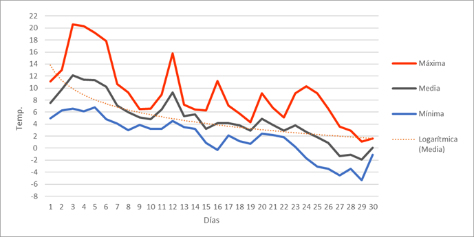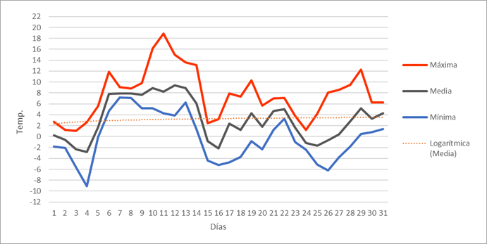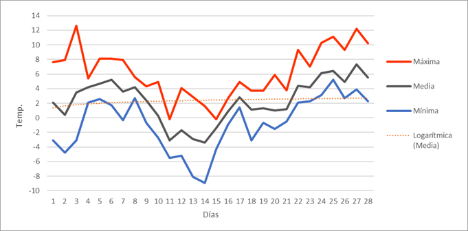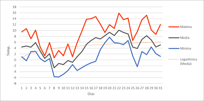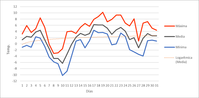 | Nº días mín<=-5º | 4 | 4 | 2 | 0 | 0 | 0 | 0 | 0 | 0 | 0 | 1 | 5 | 16 | Nº días mín<=-5º | |||||||||||