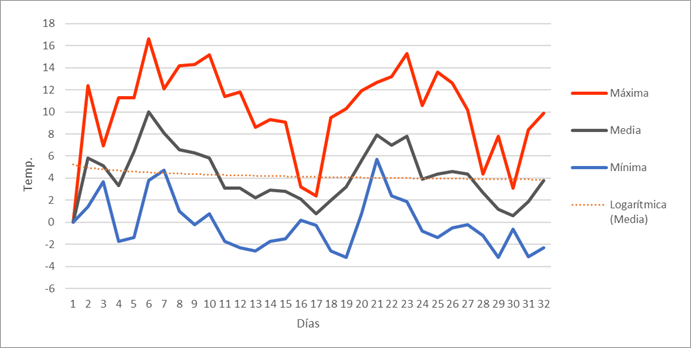 | MEDIA MENSUAL: | 4,4 | ºC | |||||||||||||||||||||||