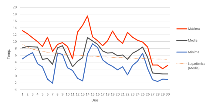 | MEDIA MENSUAL: | 4,1 | ºC | |||||||||||||||||||||||